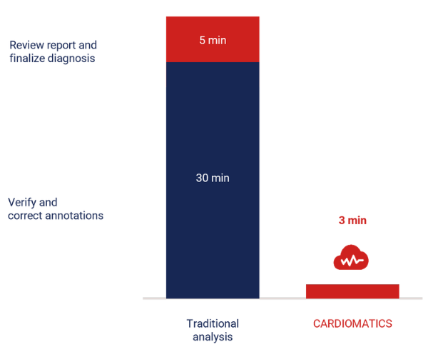 Cardiomatics is software for analysing Ambulatory ECG tests, built on three pillars. These allow specialists in hospitals, outpatient clinics and primary care facilities to cut analysis time by up 80%, and reduce patients’ waiting time for diagnosis by 36%.