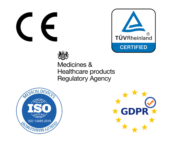 A secure and compliant cloud infrastructure with 81 international security certificates, including ISO 27000 and ISO 27001. All data is encrypted and processed according to the highest medical data protection standards.